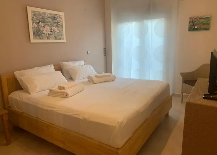 1-slaapkamer Studio Daphne Appartement, gelegen in Nea Kallikrateia, bevindt zich op 35 km afstand van de luchthaven Thessaloniki. Draadloos internet is beschikbaar voor zakelijke of recreatieve behoeften van gasten.